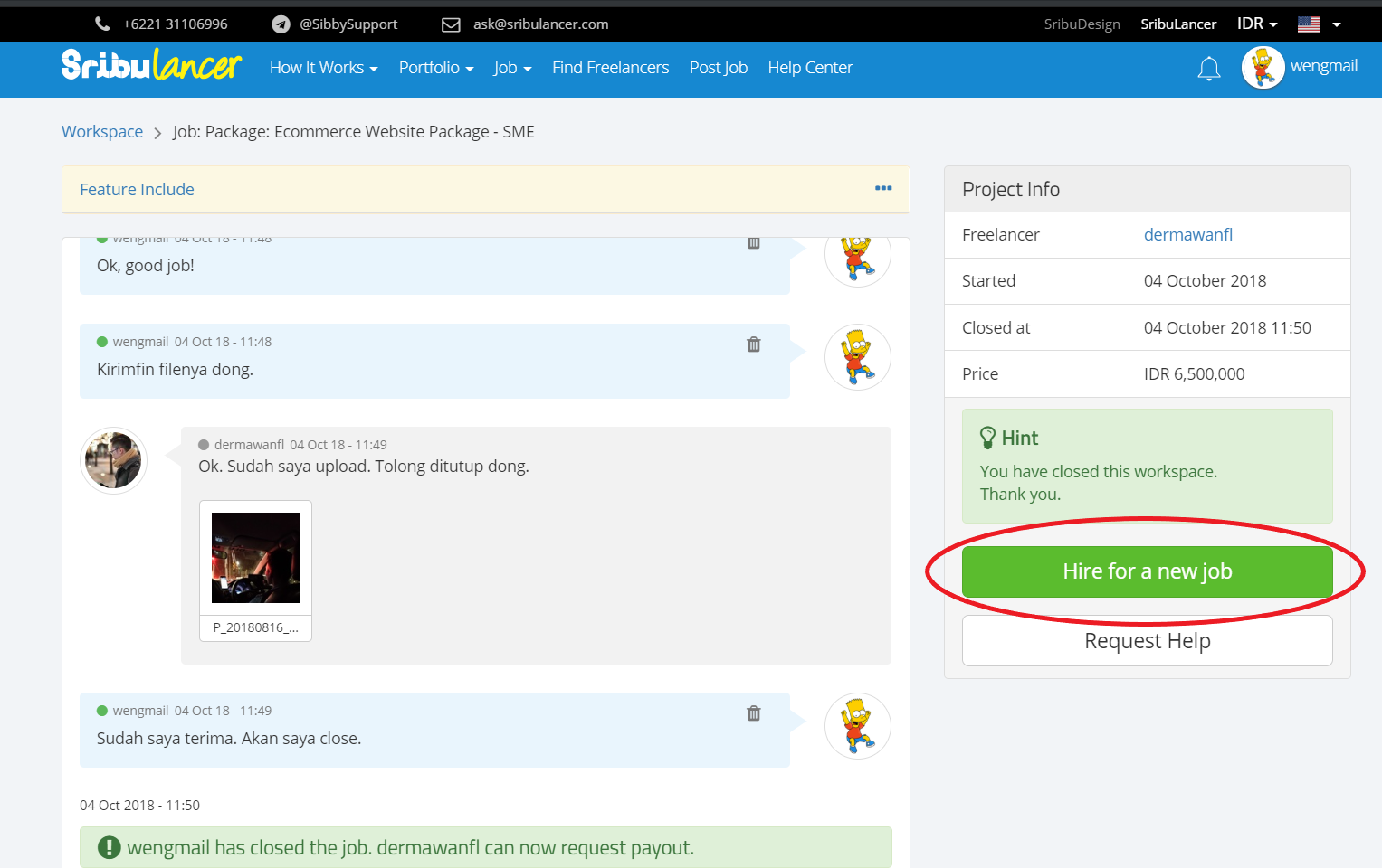 If you have any questions, you can contact us at: +6221 3110 6996 or email to ask@sribulancer.com.